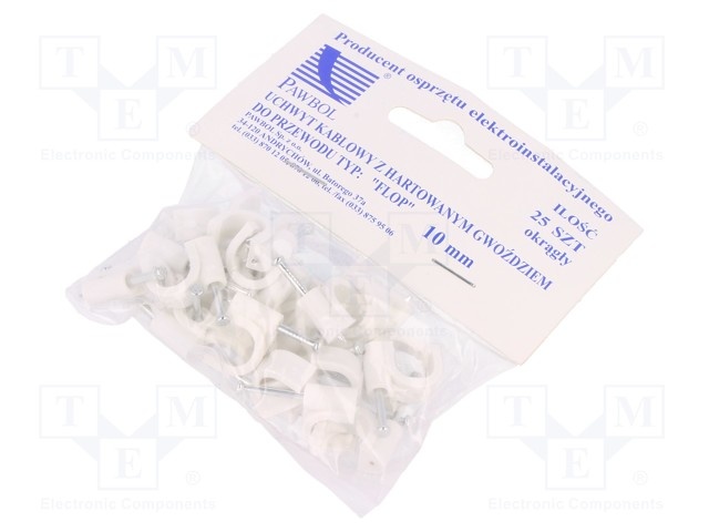 Держатель; белый; на круглый провод; 25шт; с гвоздем; 10мм