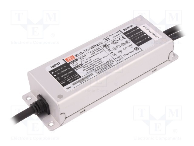 Блок питания: импульсный; LED; 75Вт; 12ВDC; 6,25А; IP67; Выходы:1