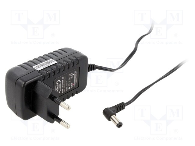 Блок питания: импульсный; 12ВDC; 1,5А; Вых: 5,5/2,1; 18Вт; 0÷40°C