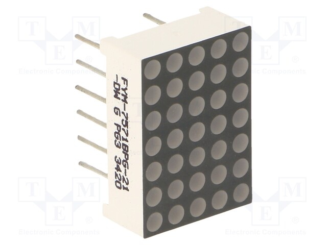 Дисплей: LED; матрица; 5x7; желто-зеленый; 20÷60мкд; анод; 2÷2,5В