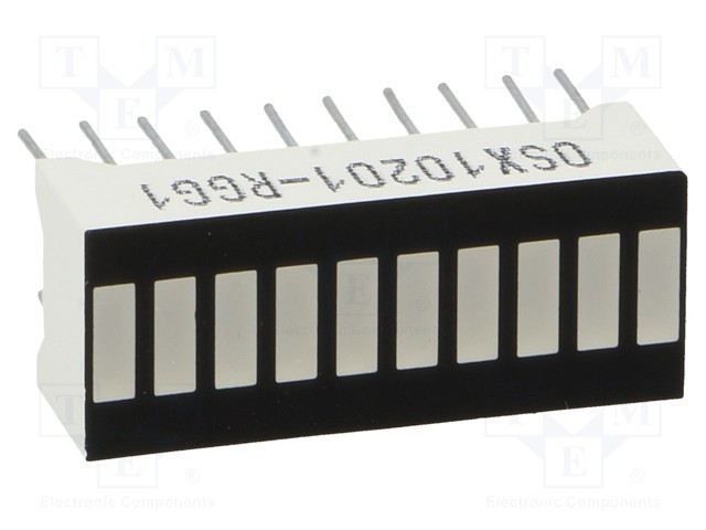 Дисплей: LED; шкала; зеленый (7х) / красный (3х)