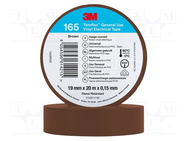 Лента: электроизоляционная; W: 19мм; L: 20м; Thk: 0,15мм; коричневый