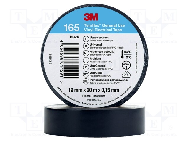 Лента: электроизоляционная; W: 19мм; L: 20м; Thk: 0,15мм; черный