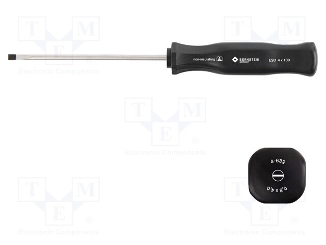 Отвертка; плоская; 4,0x0,8мм; ESD; Дл.лезвия: 100мм; Длина: 190мм