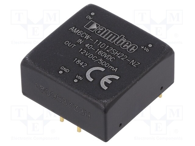 Преобразователь: DC/DC; 6Вт; Uвх: 40÷160В; 12ВDC; Iвых: 500мА; 1"x1"