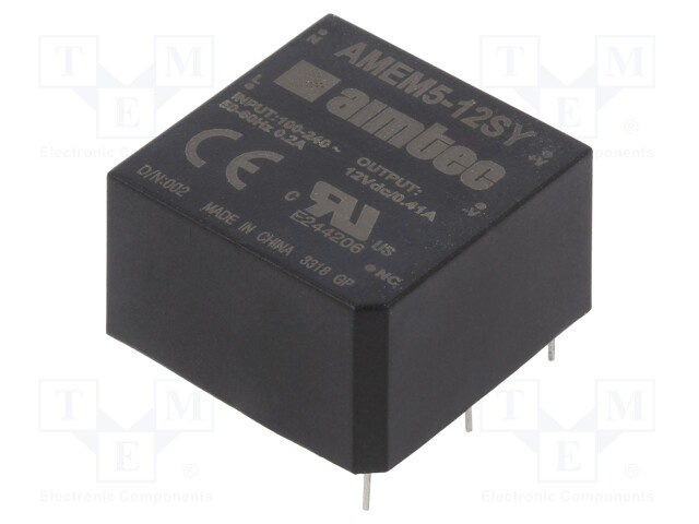 Преобразователь: AC/DC; 5Вт; Uвых: 12ВDC; Iвых: 0,41А; 78%; 4кВ
