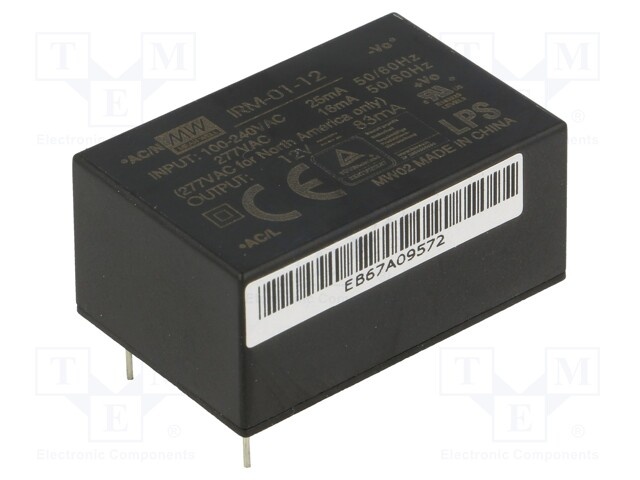 Блок питания: импульсный; модульный; 1Вт; 12ВDC; 33,7x22,2x15мм