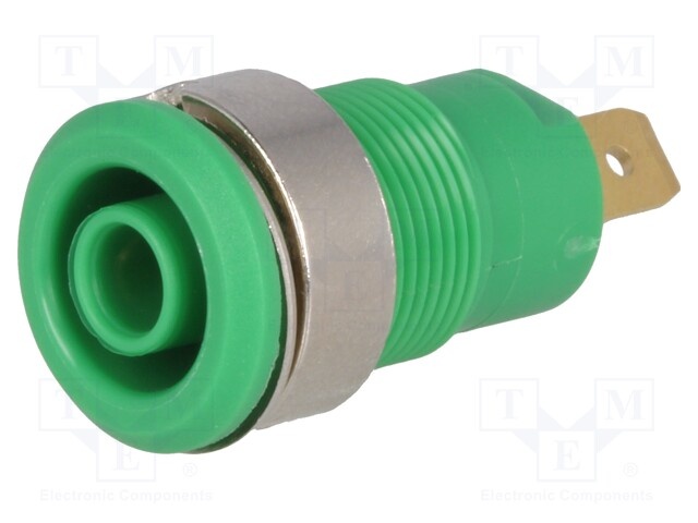 Гнездо; "банан" 4мм; 24А; Отв: Ø12,2мм; зеленый; позолота; винтами