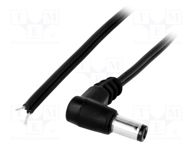 Кабель; провода, вилка DC 5,5/2,1; угловой; 0,5мм2; черный; 0,2м