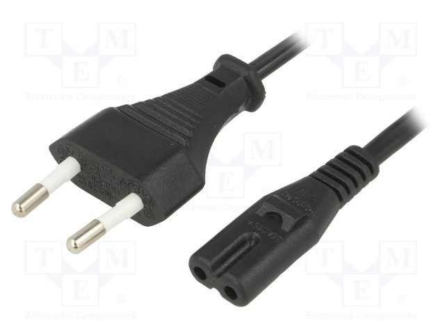 Кабель; вилка CEE 7/16 (C), IEC C7 "мама"; 3м; Гнезда:1; черный