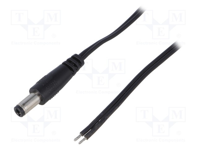 Кабель; провода, вилка DC 5,5/2,5; прямой; 0,5мм2; черный; 1,5м