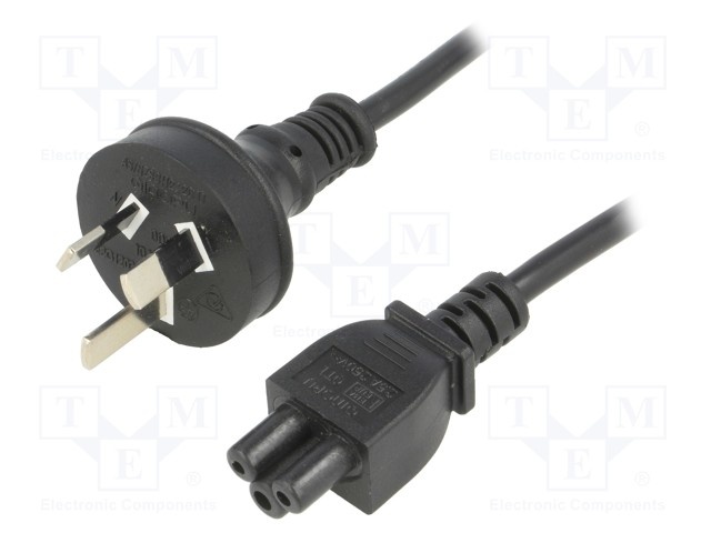 Кабель; IEC C13 "мама", вилка AS/NZS 3112 (I); 1,8м; черный; ПВХ