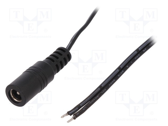 Кабель; провода, гнездо DC 5,5/2,1; прямой; 0,5мм2; черный; 0,25м