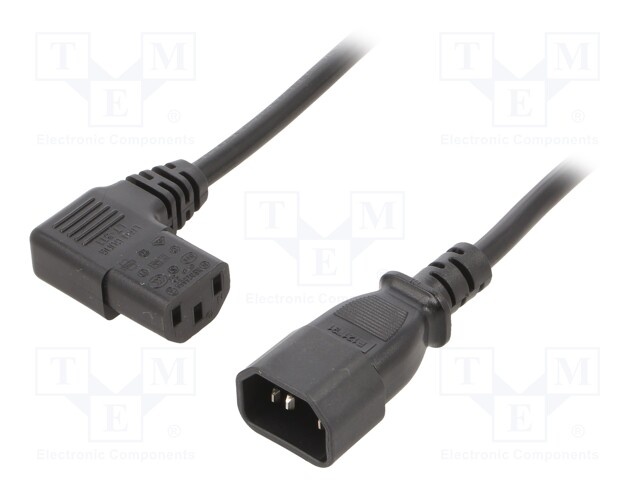 Кабель; IEC C13 "мама" 90°,IEC C14 "папа"; ПВХ; 3м; черный; 10А