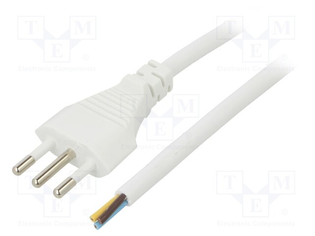 Кабель; вилка CEI 23-50 (L),провода; ПВХ; 1м; белый; 3G1мм2; 10А