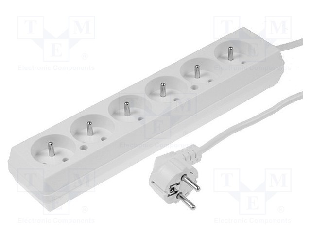 Сетевой удлинитель; Гнезда: 6; ПВХ; белый; 3x1,5мм2; 3м; 10А