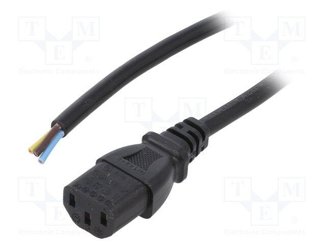 Кабель; IEC C13 "мама",провода; 1,8м; черный; ПВХ; 3x0,75мм2; 10А