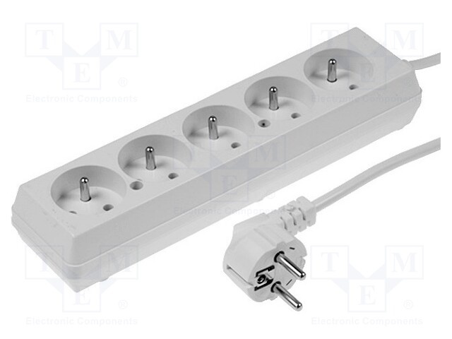Сетевой удлинитель; Гнезда: 5; ПВХ; белый; 3x1,5мм2; 5м; 10А