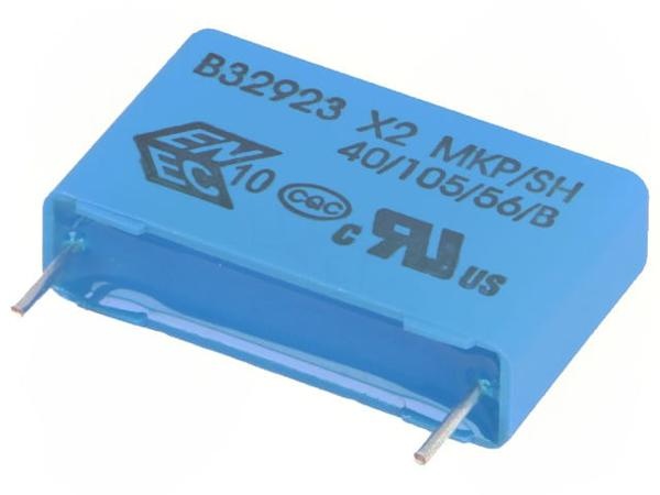 Конденсатор пленочный помехоподавляющий X2 4.7мкФ 630В постоянного тока/305В пик-пик ±20% (31.5х18х33мм) радиальный пластиковый прямоугольный корпус