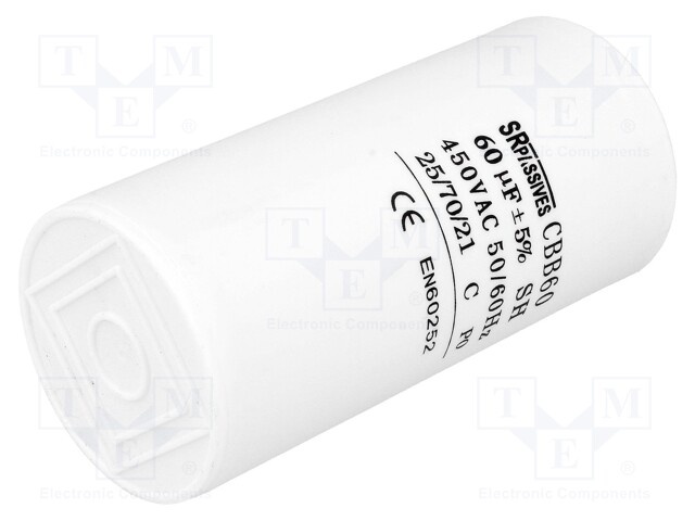Конденсатор: для двигателей, фазосдвигающий; 60мкФ; 450В; ±5%