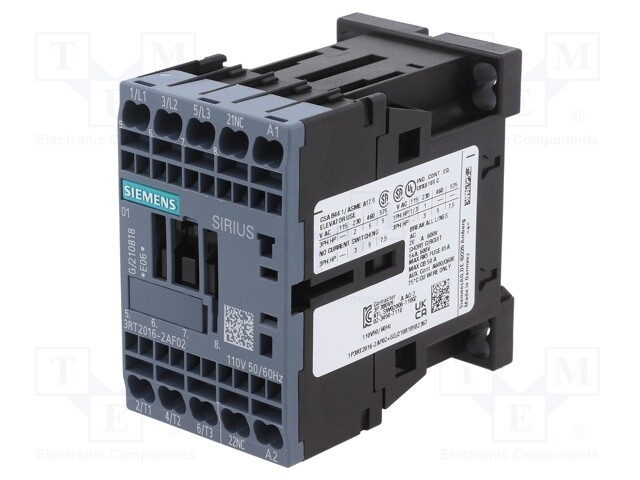 Контактор:3-полюсный; Вспомогательные контакты: NO + NC; 110ВAC