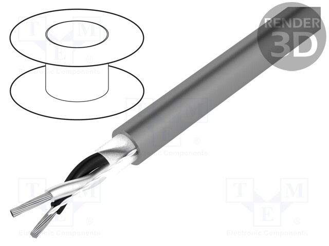Кабель; многопров; Cu; 2x22AWG; серый; ПВХ; UL AWM 10002; 300В; 50м