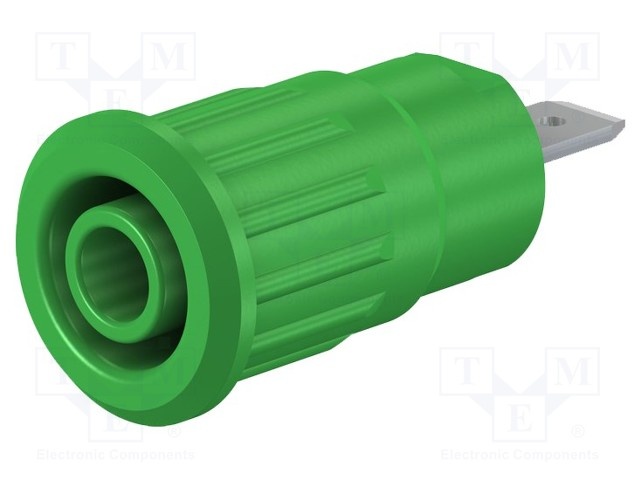 Гнездо; "банан" 4мм; 24А; 1кВ; Отв: Ø12,2мм; зеленый; изолированный