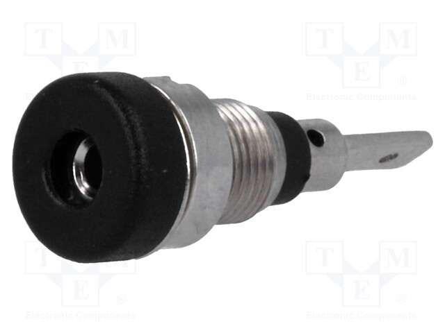 Гнездо; "банан" 2мм; 10А; 23мм; черный; Монтаж: винтами, на панель