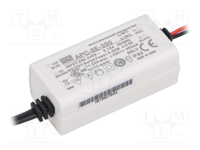 Блок питания: импульсный; LED; 8,05Вт; 11÷23ВDC; 350мА; 180÷264ВAC