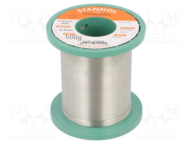 Проволочный припой; Sn96,3Ag3,7; 0,7мм; 0,5кг; катушка; 221°C