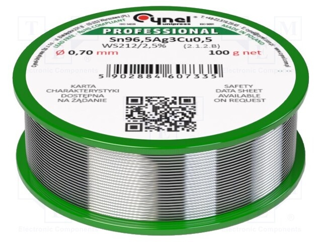 Проволочный припой; Sn96,5Ag3Cu0,5; 0,7мм; 1кг; катушка; 2,5%