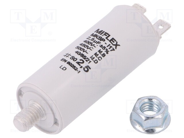 Конденсатор: для двигателей, фазосдвигающий; 2,5мкФ; Ø25x58мм