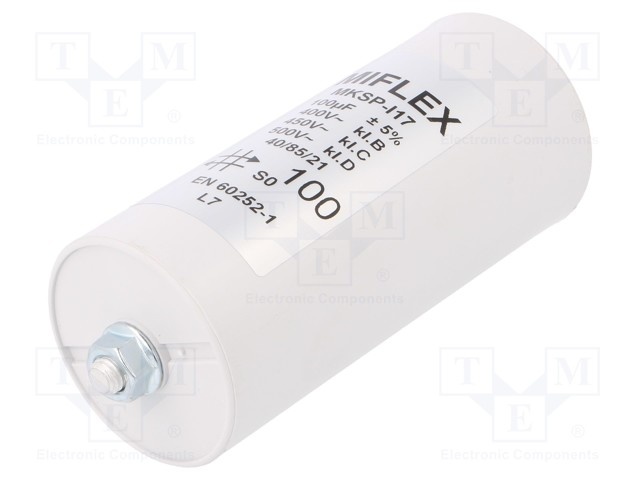 Конденсатор: для двигателей, фазосдвигающий; 100мкФ; Ø55x119мм