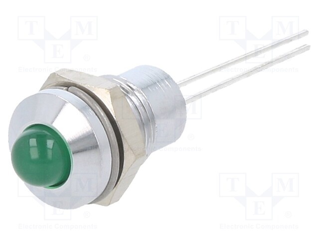 Индикат.лампа: LED; выпуклый; зеленый; 2,2ВDC; Ø8мм; 2pin; металл