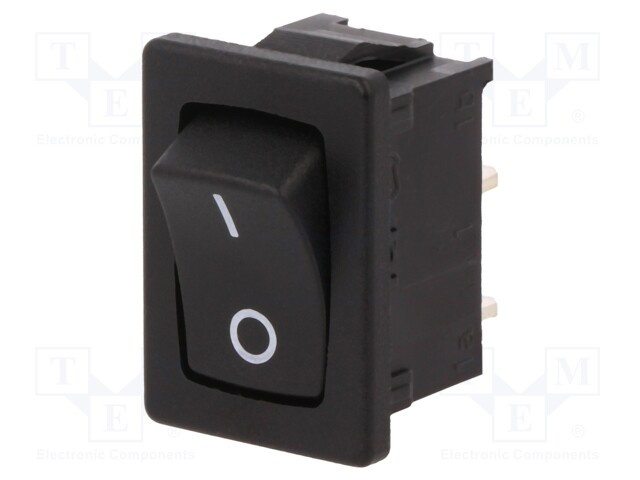 ROCKER; SPST; Пол: 2; OFF-ON; 10A/250ВAC; черный; IP40; нет; 100мОм