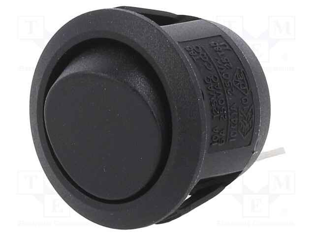 ROCKER; SPST; Пол: 2; OFF-(ON); 10A/250ВAC; черный; нет; 50мОм