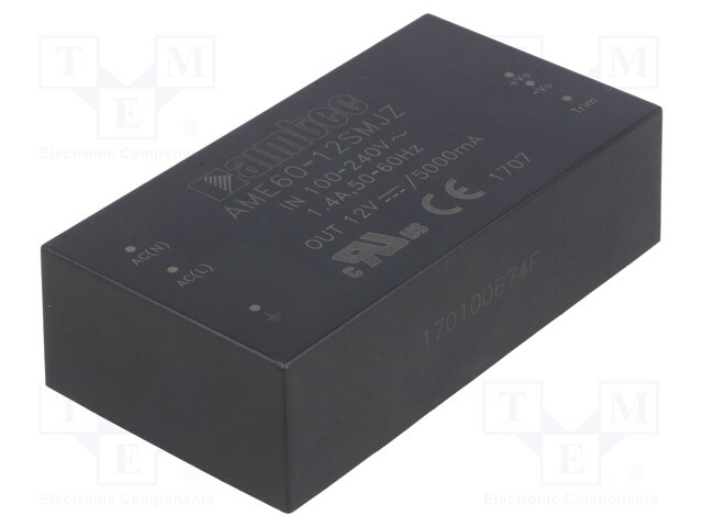 Преобразователь: AC/DC; 60Вт; Uвых: 12ВDC; Iвых: 5А; 86%; Монтаж: PCB