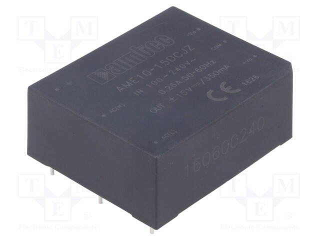 Преобразователь: AC/DC; 10Вт; Uвых: 15ВDC; Iвых: 0,35А; 81%; 3кВ; 75г