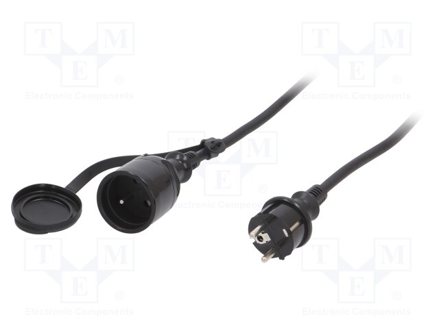 Сетевой удлинитель; Гнезда: 1; резина; черный; 3x1,5мм2; 10м; 16А