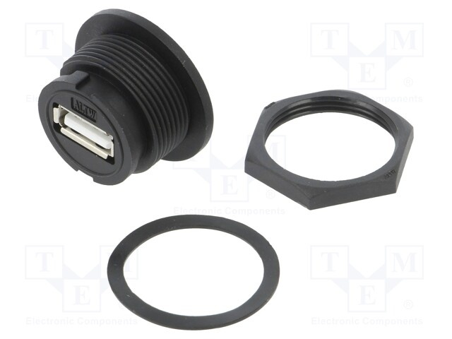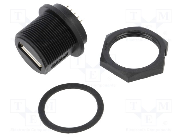 Гнездо; USB A; на панель,винтами; THT; прямой; USB 2.0; IP68