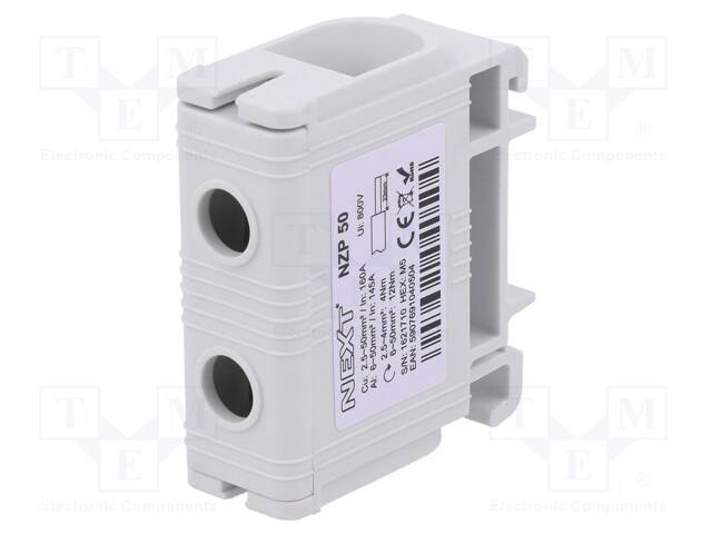 Соединитель: на рейку; 50мм2; Кол-во полюс: 1; клеммы: 2; серый