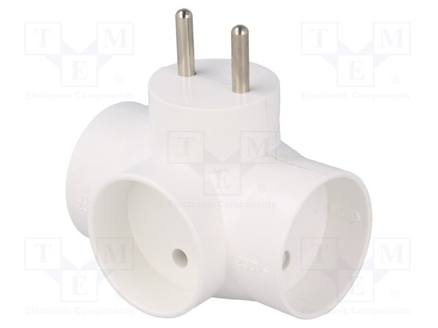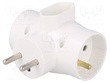 Разъем: питания AC; разветвитель; Конфиг.выводов:2P+PE; белый