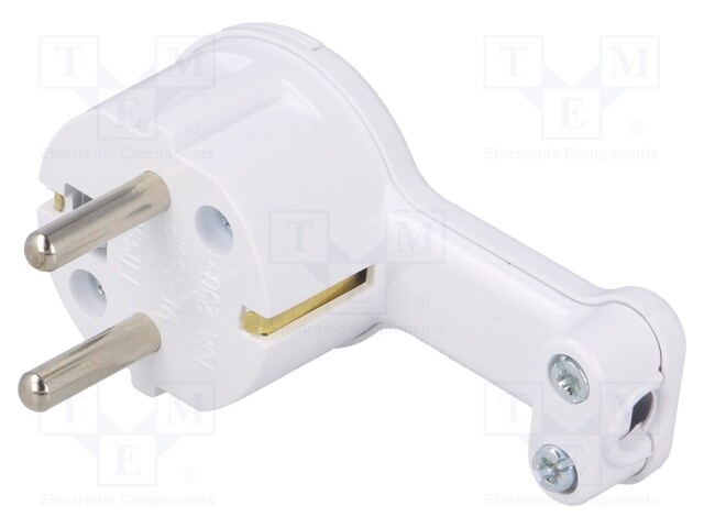 Разъем: питания AC; вилка; Конфиг.выводов:2P+PE; белый; 250ВAC