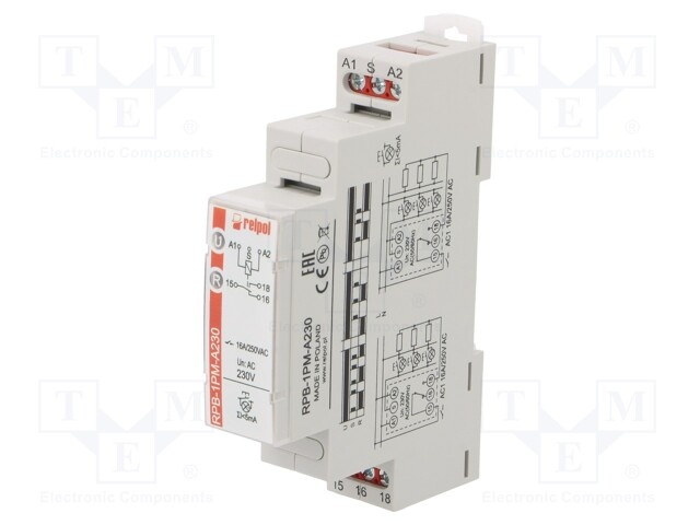 Реле: установочное; бистабильное; SPST-NO; 16А; 90x17,5x64,6мм