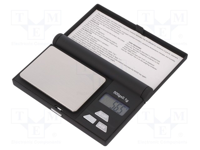 Устройство: весы; Размер чаши:70x50мм; Предел взвеш.макс:500г