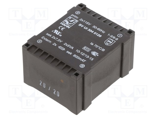 Трансформатор: залитый; 10ВА; 115/115ВAC; 7,5В; 7,5В; 667мА; 667мА