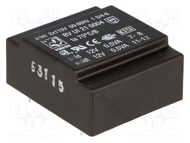 Трансформатор: залитый; 1ВА; 115/115ВAC; 12В; 12В; 41мА; 41мА; 50г