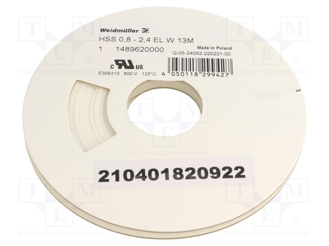 Термоусадочная трубка; без клея; 3: 1; 2,4мм; L: 13м; белый